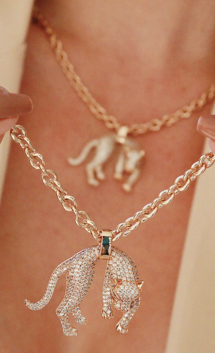 Colar Pingente Pantera Cravejado em Zircônias